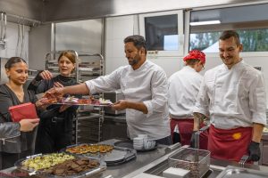 In Rajenders neuer Profi-KĂŒche legen wir gemeinsam los. Wir teilen uns in kleine Teams auf, und jede Gruppe kĂŒmmert sich um einen anderen Teil des MenĂŒs. Ihr kocht hier Seite an Seite wie die Profis, habt aber natĂŒrlich Rajender und seine Leute immer direkt bei euch, um zu helfen oder den entscheidenden Tipp zu geben. Es wird geschnippelt, gerĂŒhrt und gelacht – eben genau so, wie es in einer lebendigen KĂŒche sein soll.
